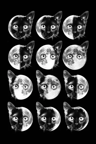 Digital Cat Moon Phases Set Digital Fill